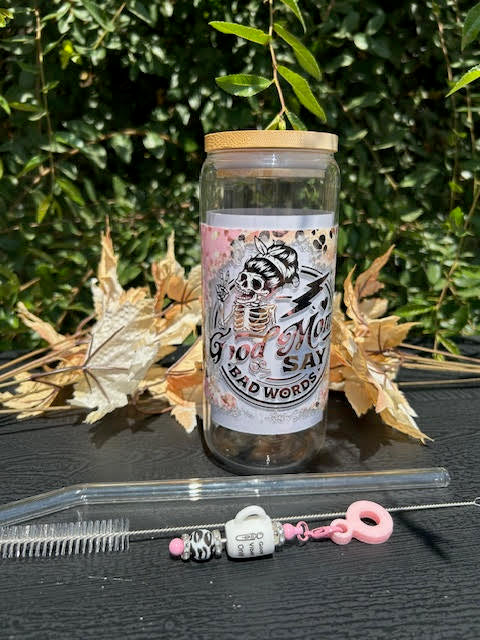 Bold meets beautiful in this unique 16oz glass can cup featuring an artistic skull and floral design. Symbolizing strength, transformation, and the balance of life and beauty, this cup is perfect for those who love edgy style with a touch of elegance.