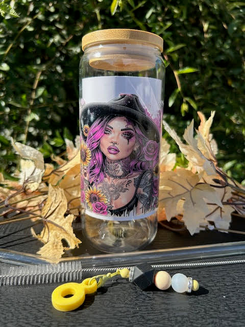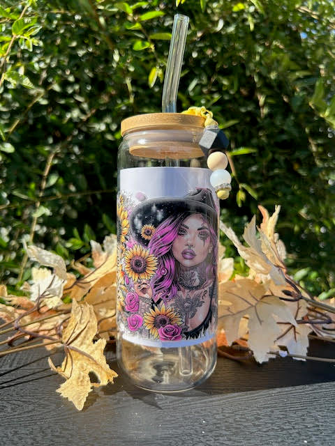 Radiate sunshine and free-spirited vibes with every sip. This 20oz glass can cup features a whimsical boho-inspired sunflower girl design—symbolizing warmth, positivity, and carefree beauty. Perfect for iced coffee, tea, smoothies, or sparkling water, it adds a touch of sunshine to your everyday routine.