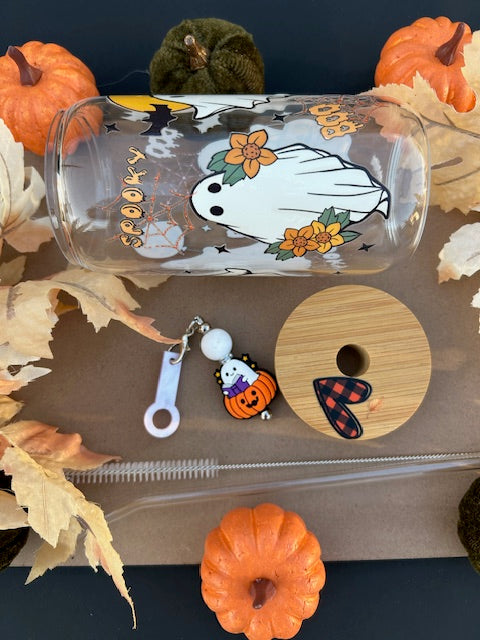 Hey Boo, Sip Happens 16 oz Glass Can Cup